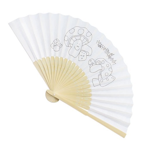 Divertidos dibujos para colorear plamados en originales abanicos, realizados en bambú y celulosa y decorados.Incluye ceras de colores