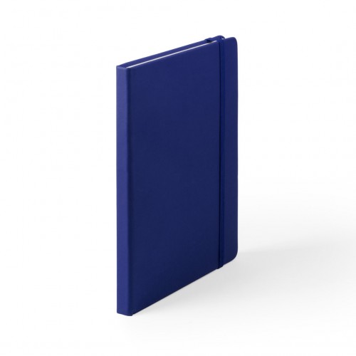 Bloc de notas A5 con tapas duras fabricado en suave polipiel y con 100 hojas lisas. Incluye marcapáginas de tela y banda elástica a juego. Disponible en una extensa gama de colores y presentado en bolsa individual de papel reciclado.