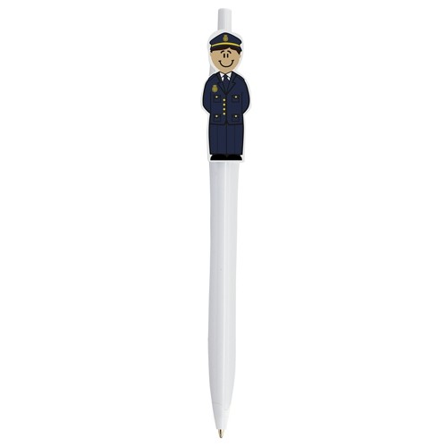 Bolígrafos con dibujos de profesionales, como doctora (ref. 10585), doctor (ref. 10586), enfermero (ref. 10587), enfermera (ref. 10588), farmacéutica (ref. 10589), farmacéutico (ref. 10590), policía (ref. 10591) y guardia civil (ref. 10592),Escritura azul.