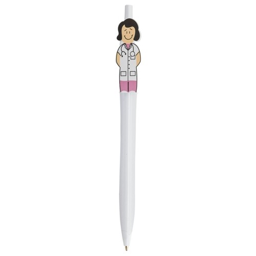Bolígrafos con dibujos de profesionales, como doctora (ref. 10585), doctor (ref. 10586), enfermero (ref. 10587), enfermera (ref. 10588), farmacéutica (ref. 10589), farmacéutico (ref. 10590), policía (ref. 10591) y guardia civil (ref. 10592),Escritura azul.