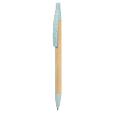Novedosa colección de bolígrafos fabricados con una combinación de materiales naturales, Ecológicos y respetuosos con el medio ambiente.El cuerpo está realizado en cartón reciclado y las terminaciones en PP con fibra de trigo de colores cálidos. Su escritura agradable hace de este artículo un top ventas en productos ECO.Disponible en 4 colores: AZUL, CREMA, ROSA, y VERDEEscritura azul