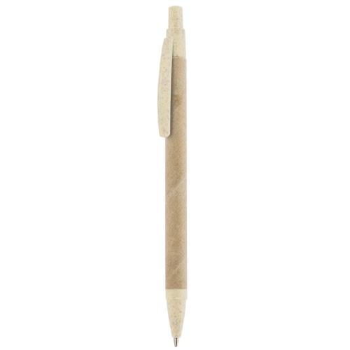 Novedosa colección de bolígrafos fabricados con una combinación de materiales naturales, Ecológicos y respetuosos con el medio ambiente.El cuerpo está realizado en cartón reciclado y las terminaciones en PP con fibra de trigo de colores cálidos. Su escritura agradable hace de este artículo un top ventas en productos ECO.Disponible en 4 colores: AZUL, CREMA, ROSA, y VERDEEscritura azul