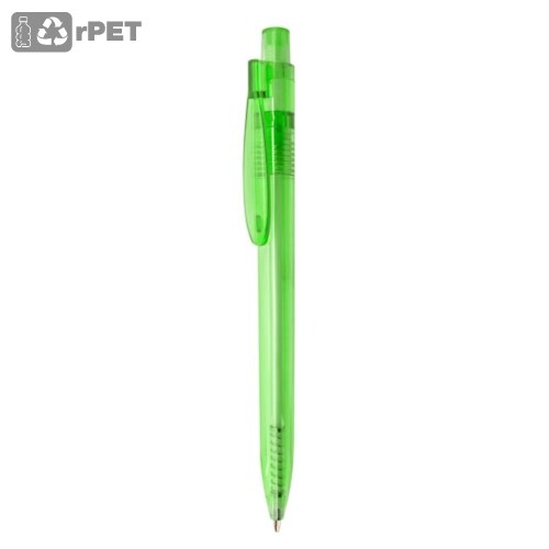 Esta colección de bolígrafos está realizada con material rPET, a partir de plástico reciclado básicamente de las típicas botellas de agua que se encuentran en cualquier supermercado. Incluye un clip con gran zona de marcaje. Escritura Azul.Disponible en colores azul, rojo, naranja, negro, transparente y verde.