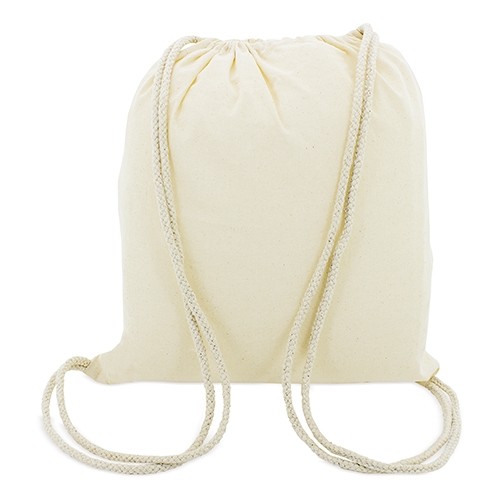 Bolsa 100% algodón tipo mochila con doble asa y cierre ajustable.