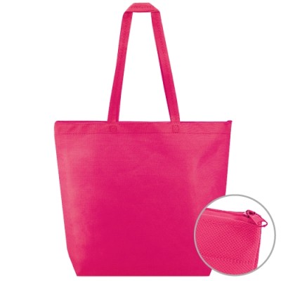 Una gran bolsa de Non Woven con doble asa larga, perfecta para transportar todo lo que desees. Su base amplia le permite llevar en su interior compras, revistas, catálogos, regalos, etc. Gracias a su cierre de cremallera es especial para llevar contenido más delicado como, por ejemplo, los platos más especiales de su restaurante favorito.