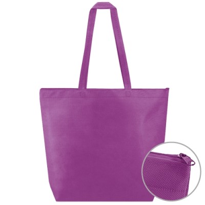Una gran bolsa de Non Woven con doble asa larga, perfecta para transportar todo lo que desees. Su base amplia le permite llevar en su interior compras, revistas, catálogos, regalos, etc. Gracias a su cierre de cremallera es especial para llevar contenido más delicado como, por ejemplo, los platos más especiales de su restaurante favorito.