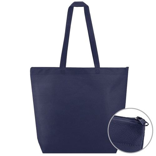 Una gran bolsa de Non Woven con doble asa larga, perfecta para transportar todo lo que desees. Su base amplia le permite llevar en su interior compras, revistas, catálogos, regalos, etc. Gracias a su cierre de cremallera es especial para llevar contenido más delicado como, por ejemplo, los platos más especiales de su restaurante favorito.