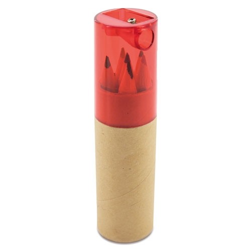 Caja Redonda 6 Colores Y Sacapuntas Daffy Rojo