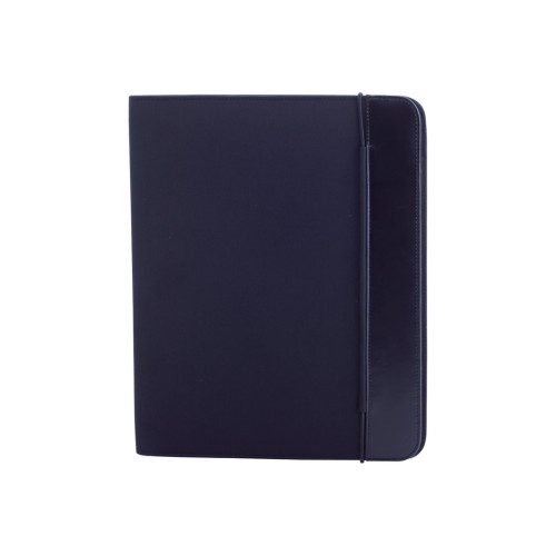 Carpeta de diseño bicolor en vivos colores acabada en suave microfibra y con cierre elástico. Interior a juego con bloc extraíble de 20 hojas lisas, bolsillo de solapa, tarjeteros y soporte para bolígrafo.