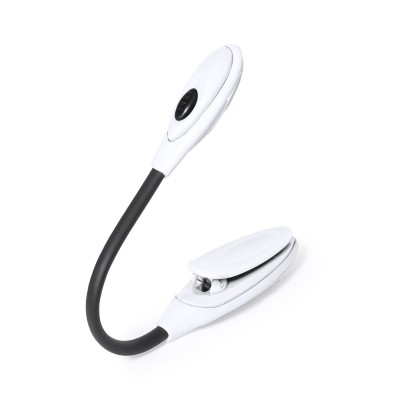 Lámpara led de lectura de diseño bicolor. Con cuerpo flexible y cómoda pinza de sujeción. Presentada en caja individual.