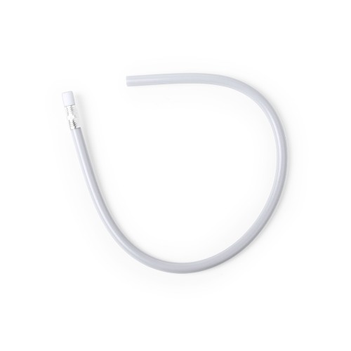 Lápiz flexible extra largo, de acabado brillo. Con cuerpo redondo y goma de borrar a juego. Disponible en variada gama de colores, con mina negra y punta sin afilar.