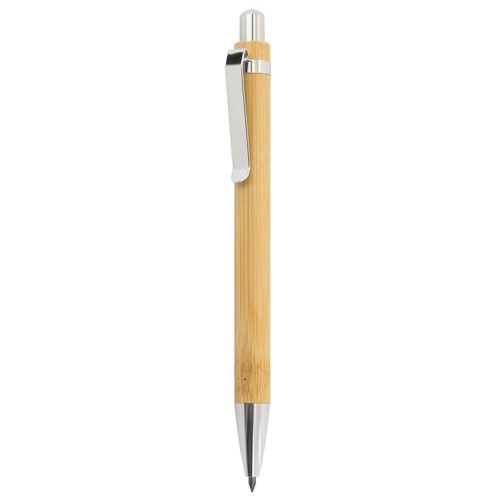 Lápiz realizado en bambú con detalles en metal.Punta de grafito para una escritura sin residuos e infinita.