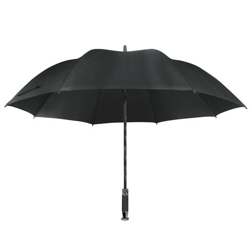 Paraguas de gran capacidad con mango de diseño ergonómico realizado en metal y caucho. Incluye funda bandolera.