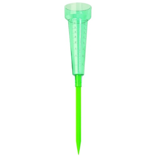 Pluviómetro de 40l/m2 con cuerpo de acabado transparente y resistente pincho de fijación.