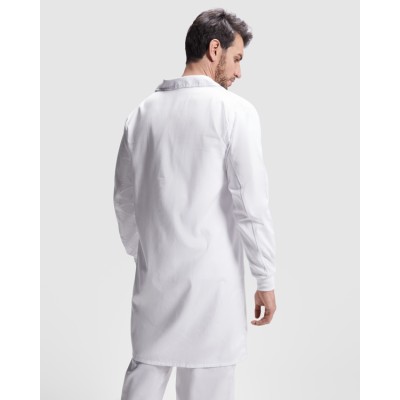 Bata de manga larga unisex. · Abertura central con Botones automáticos en el interior. · Bolsillo interior en pecho izquierdo.· Puños ajustables de canalé 1x1.