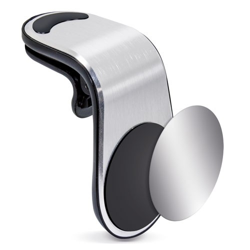 Su diseño alargado permite situar la pinza en la rejilla de ventilación haciendo que el teléfono quede en la parte inferior, por lo que no interfiere en la salida de aire del conducto.